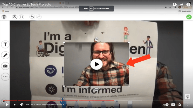 The 5th idea is to have students create a paper-based project (or any non-computer related project) and then have them take a picture of it or a video of it using Seesaw.