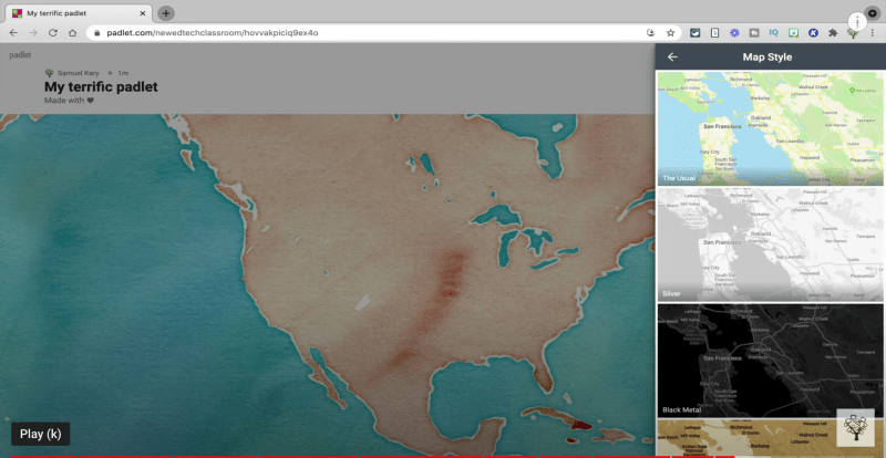 To make a map, students will need to sign up for free Padlet accounts and then choose the Map board. Click here if you need a student tutorial to show them how.